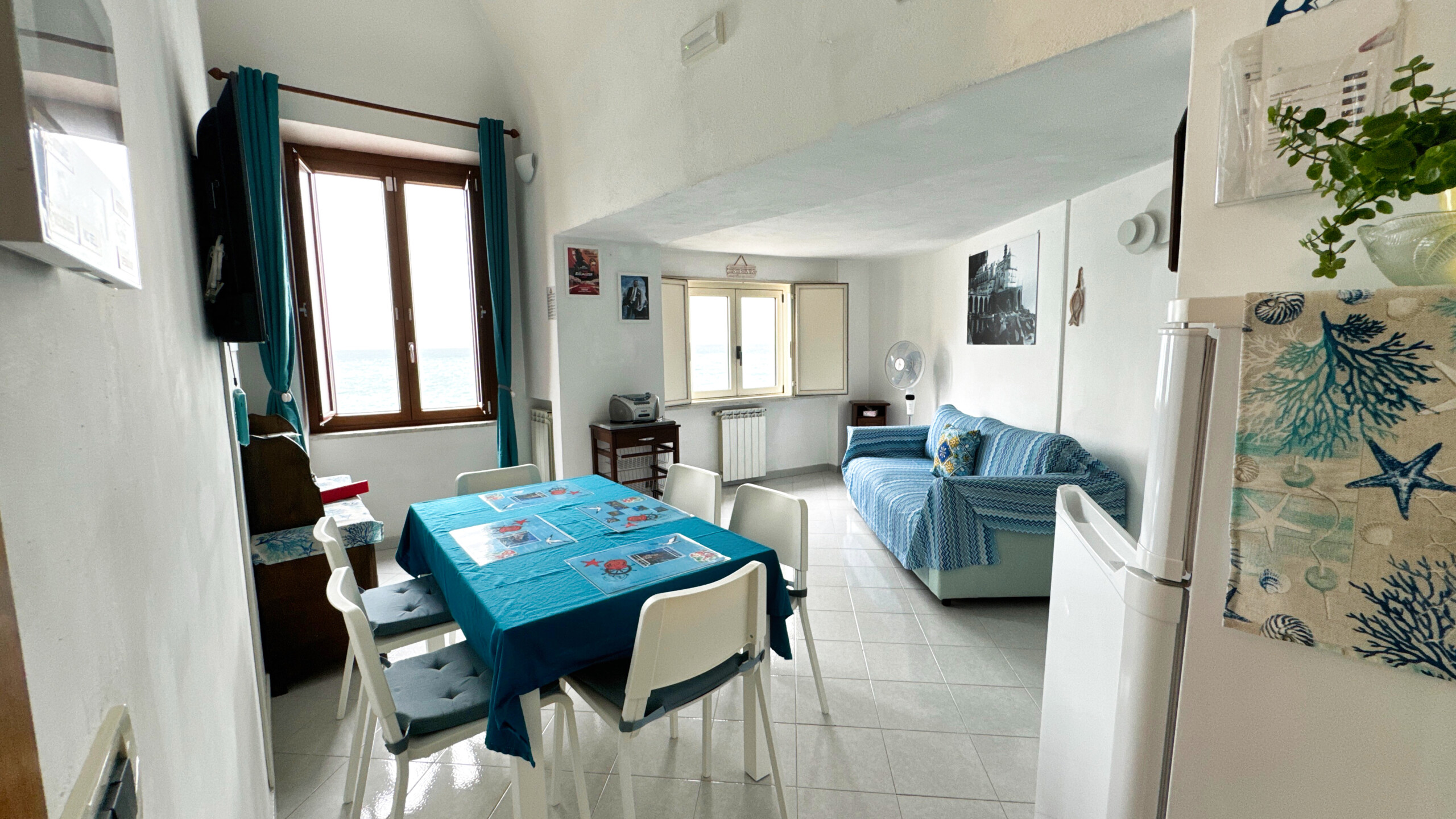 L’appartamento gode sia nella zona giorno che nella zona notte di un’incantevole vista mare, a picco sulla spiaggia del paese.