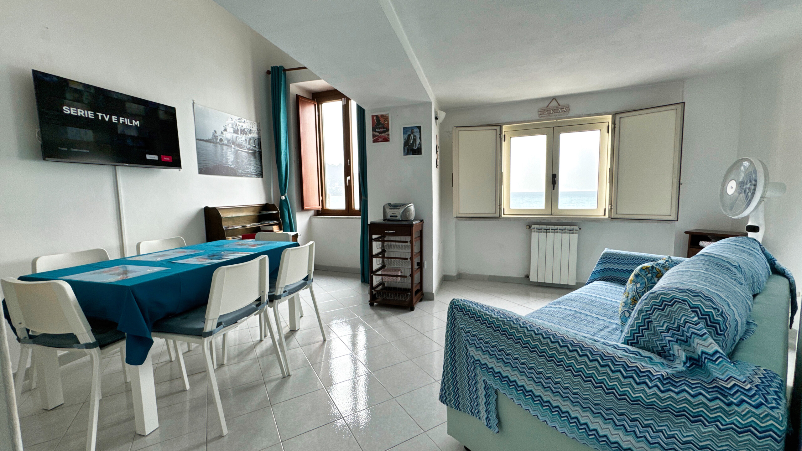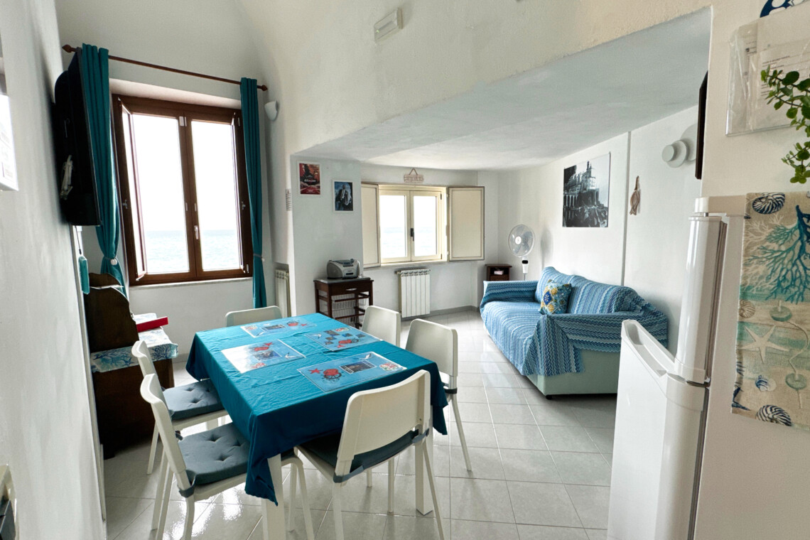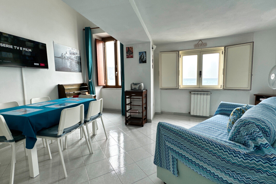 The apartment enjoys an enchanting sea view both in the living area and in the sleeping area, overlooking the town beach.