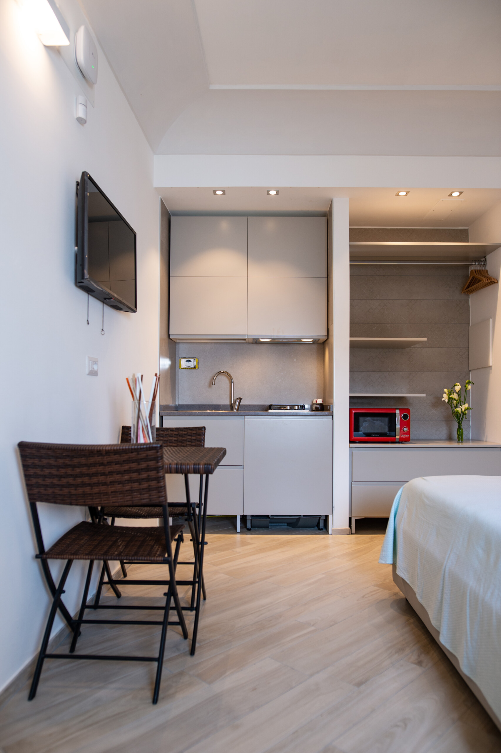 Este apartamento consta de un dormitorio con cama doble, baño y cocina americana, Wi-fi gratis, aire acondicionado, nevera, televisor LCD con pantalla plana, plancha y tabla de planchar.